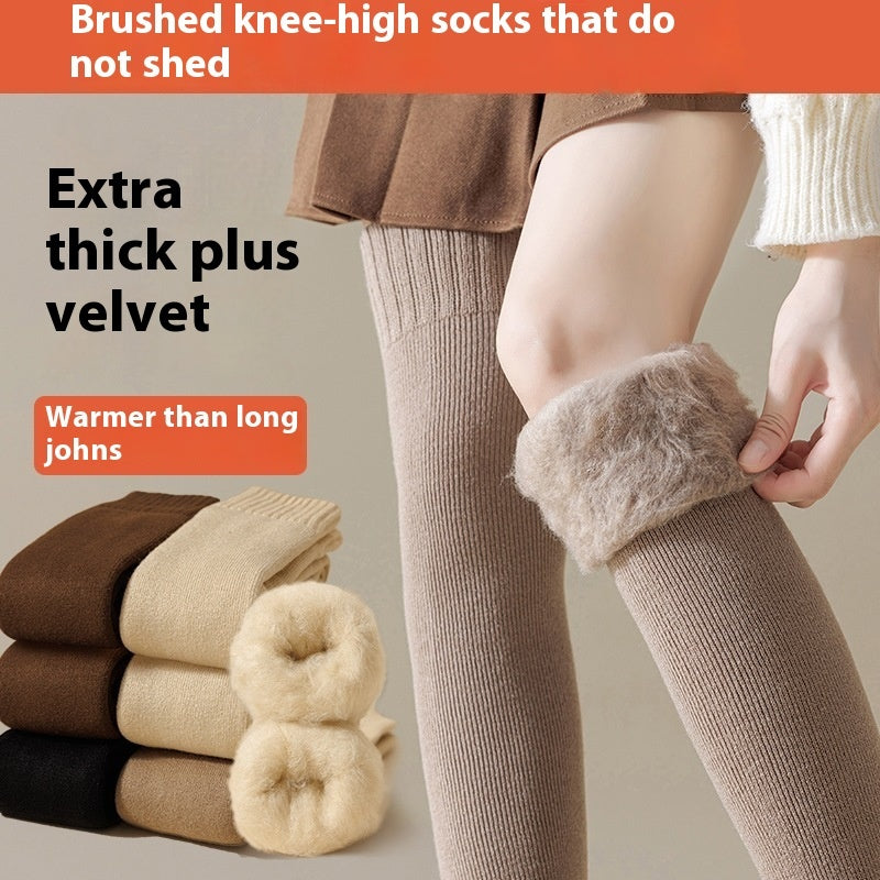 Cashmere Knee Socks Women's Long Tube Fleece-lined