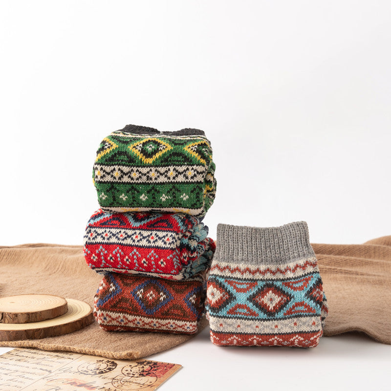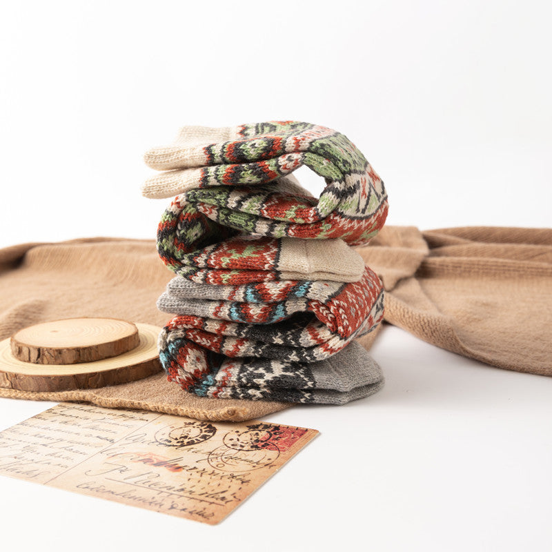 Women's Mid Tube Stockings Diamond Lattice Flat Deer Ethnic Style